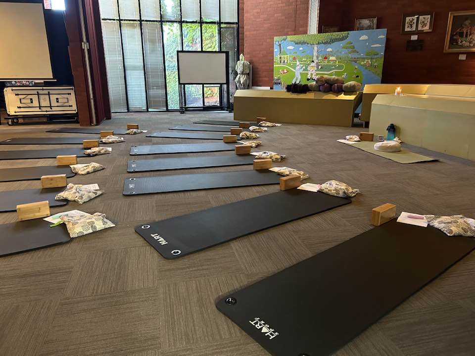 All mats, bolsters, blocks etc supplied.